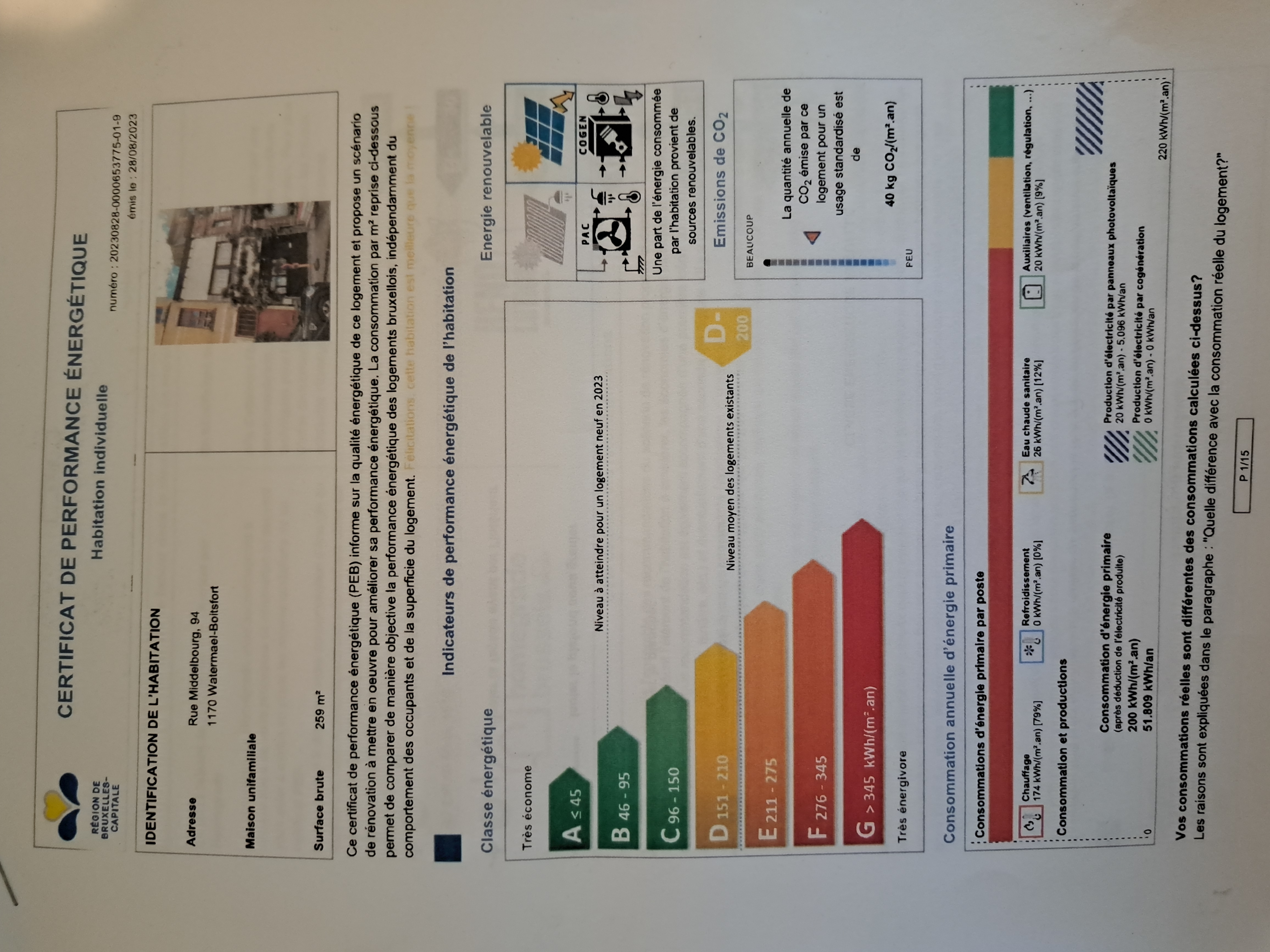 - PEB E-SPEC (kwh/m²/an) : 200
