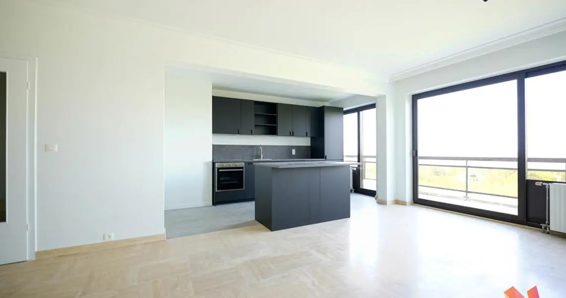 Uccle, Avenue Circulaire, à deux pas de l'Observatoire, superbe penthouse récemment rénové comprenant : un grand hall d'entrée, un vaste séjour de 40 m2 avec une cuisine américaine super-équipée, un hall de nuit qui dessert deux belles chambres de 16m2 et 12m2, une salle de douche et deux toilettes.