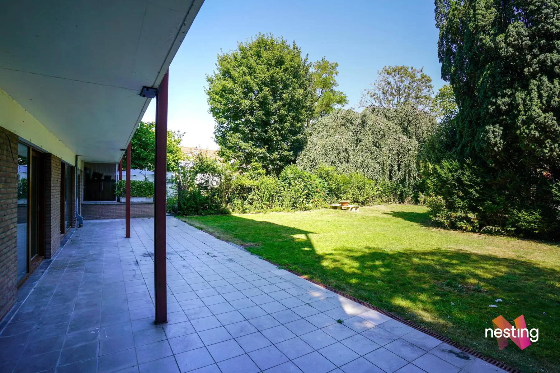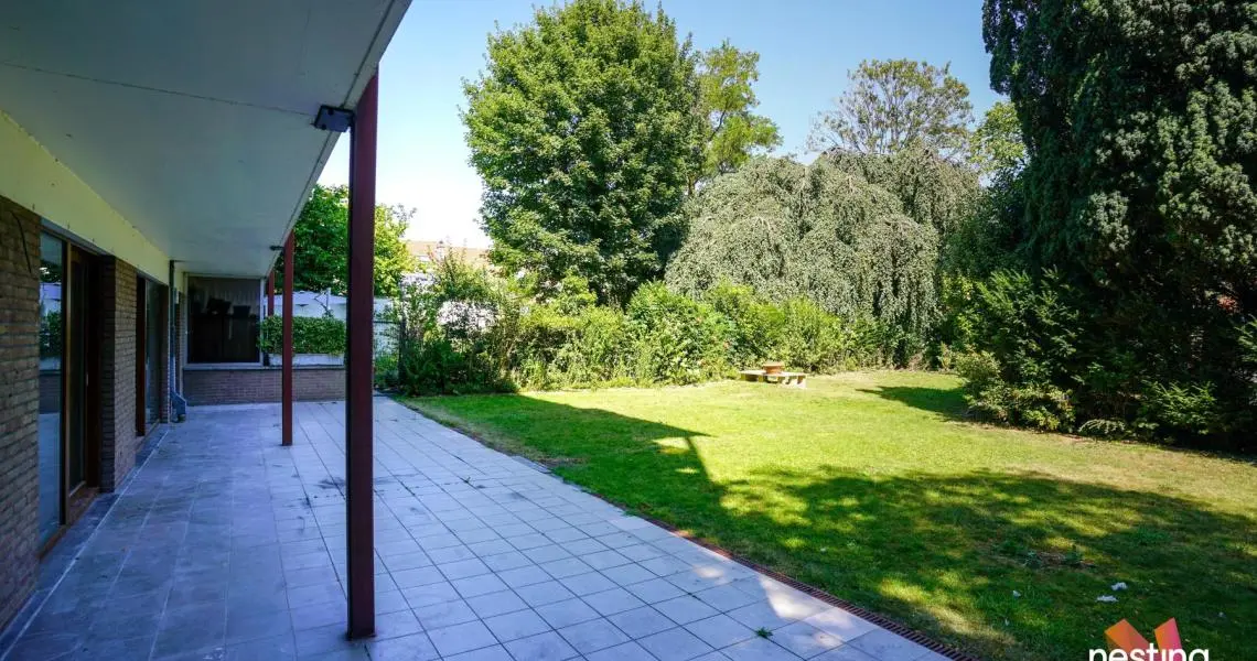 Hall d'entrée avec un coin vestiaire, Cuisine US super équipée, séjour de +/-60m2 donnant sur la terrasse de +/-50m2 et le jardin de +/-500m2 orienté sud-est, hall de nuit, 2 chambres, salle de douche avec espace buanderie et wc séparé.