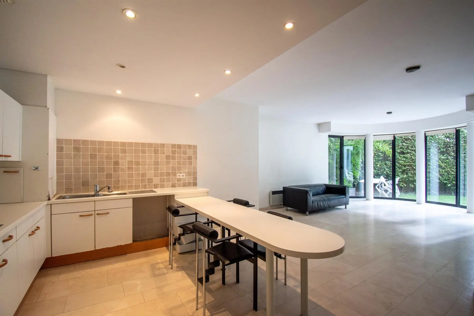 Uccle, dans le Parc Brugmann, à proximité de l'avenue Winston Churchill, de la place Vanderkindere, des commerces et des transports en communs, superbe rez-de-chaussée en bon état, lumineux et offrant : hall d'entrée, toilette séparée, cuisine US super-équipée, vaste séjour de +/-30m2 donnant sur le jardin de +/-90m2 orienté sud, chambres (+/- 13m2 et +/-9m2), salle de bains, buanderie. Buanderie. PEB : F. Charges : 210€/mois (Communs, fond de réserve, conciergerie, eau...).