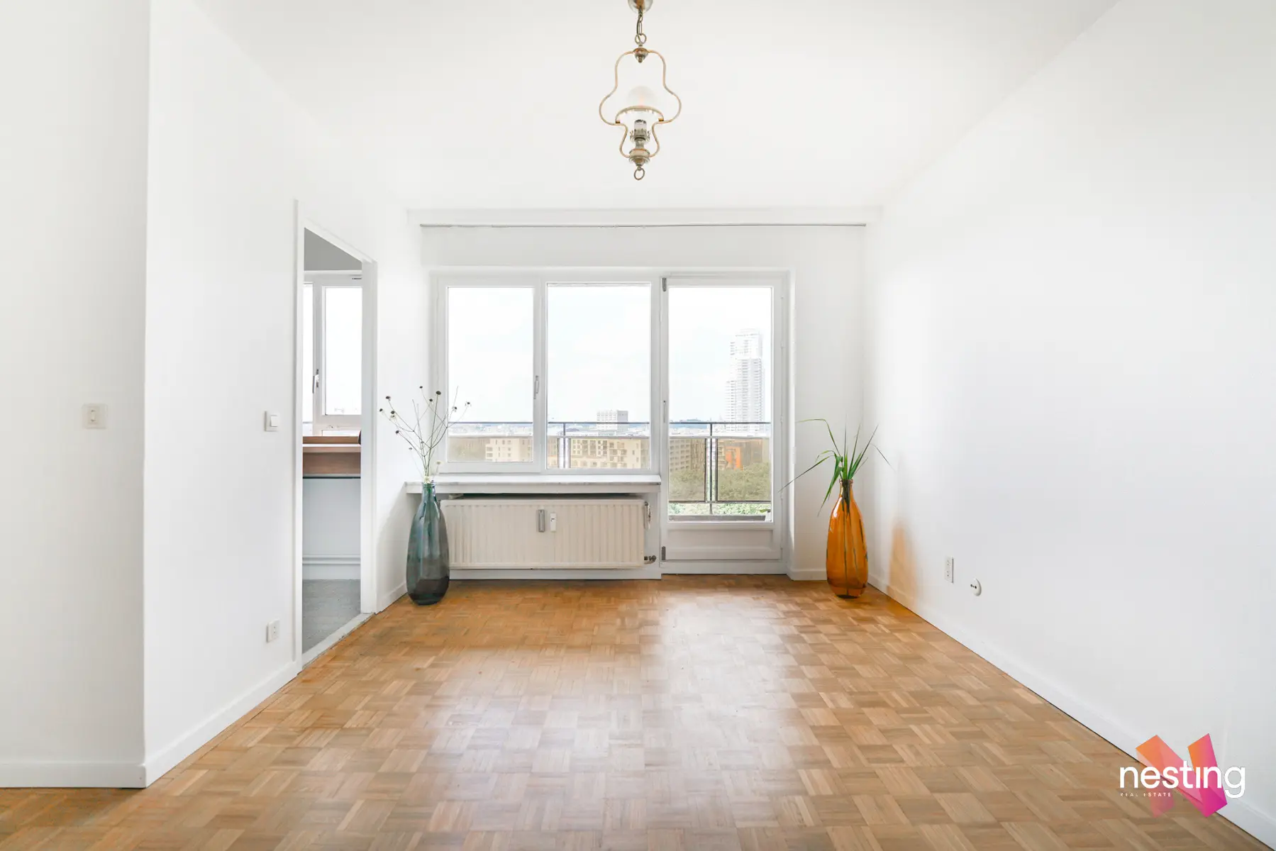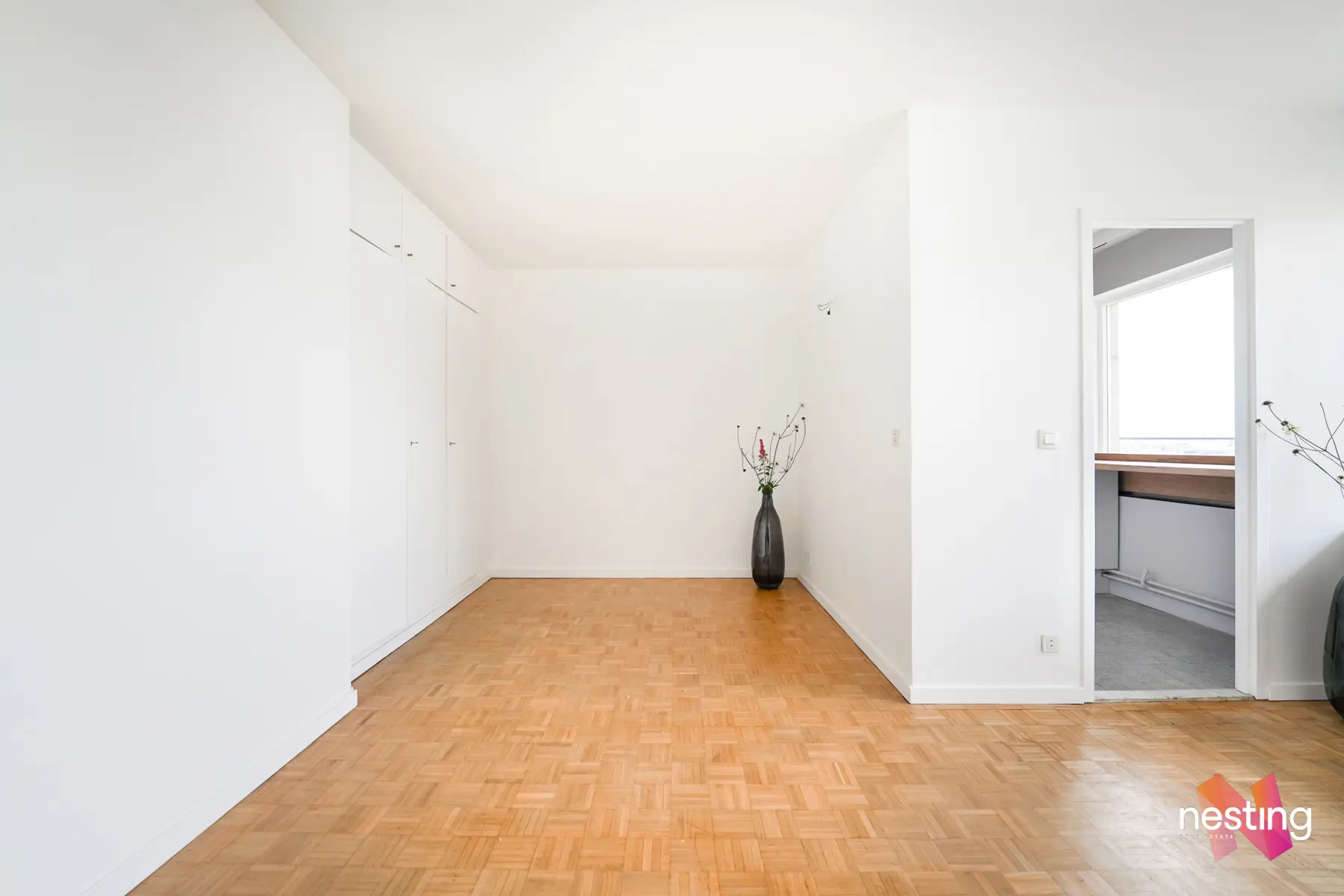 Le séjour de +-20m² avec un espace chambre doté d'un dressing est baigné de lumière naturelle, offrant un cadre agréable pour se détendre ou recevoir des invités. Du séjour, vous pourrez accéder à une terrasse de +- 7m² qui donne une vue sur tout Bruxelles