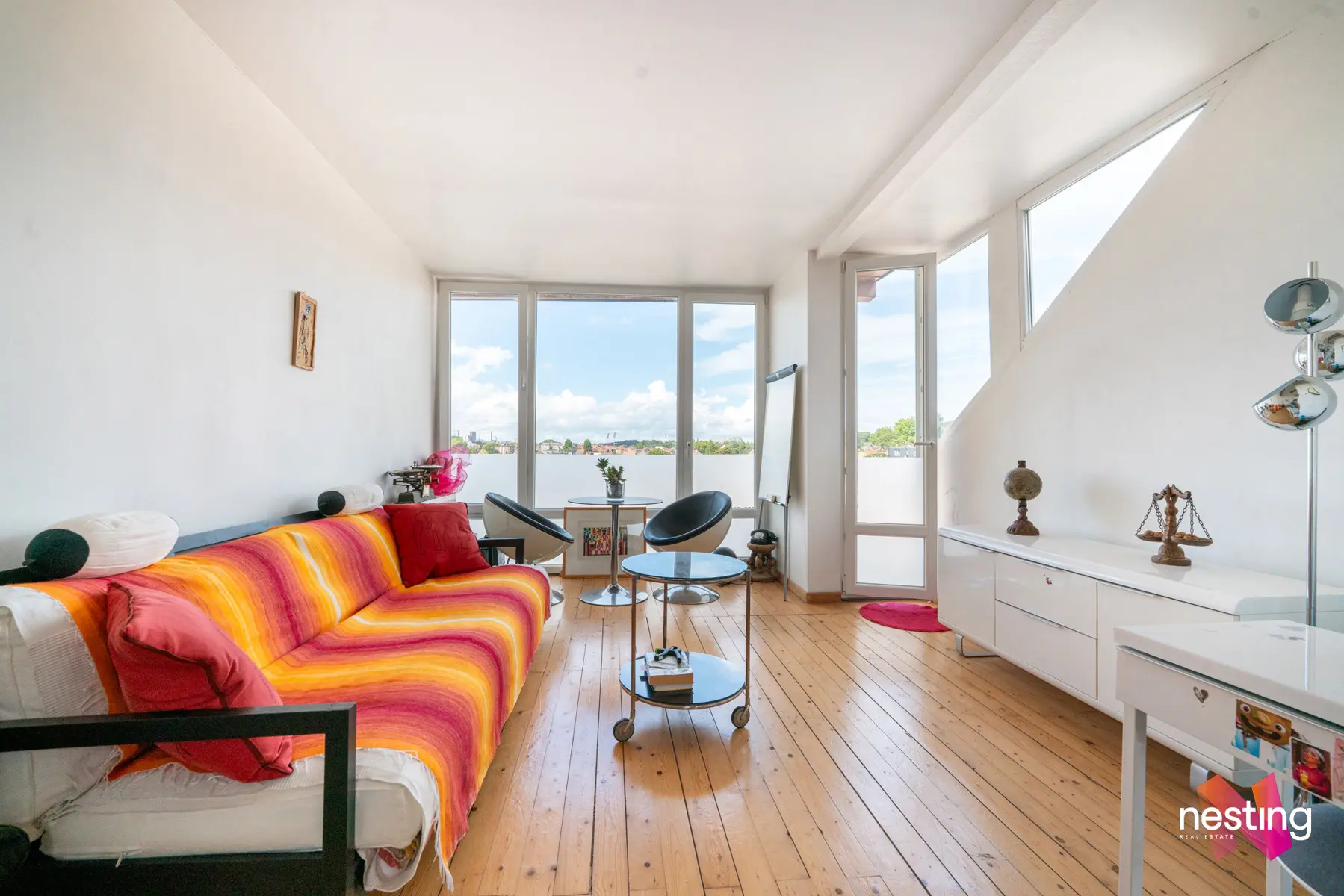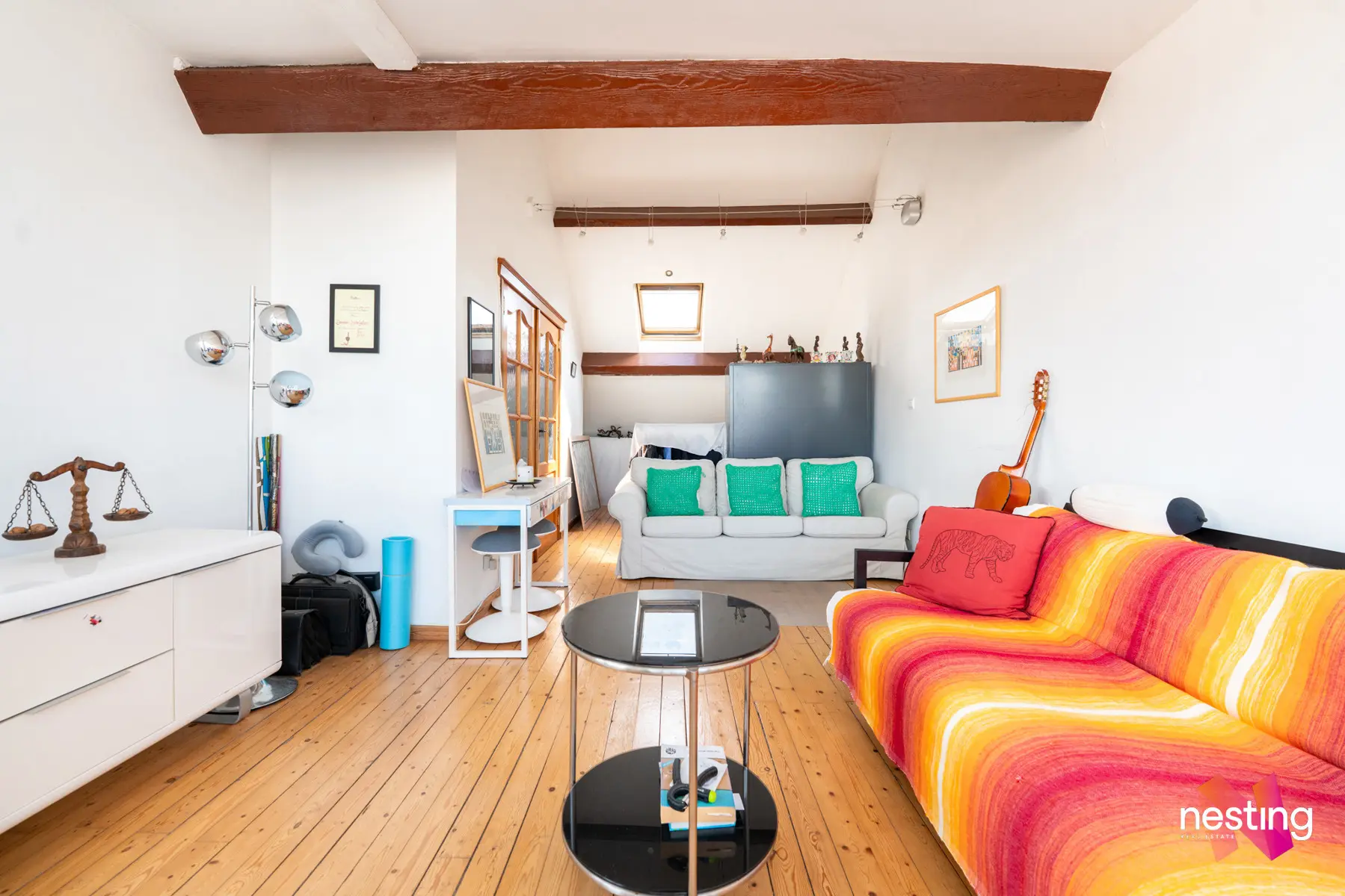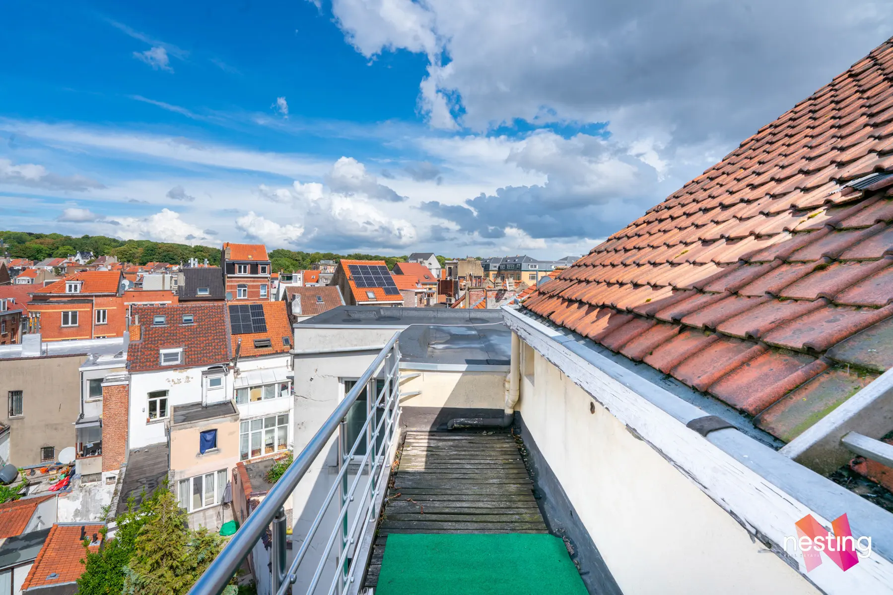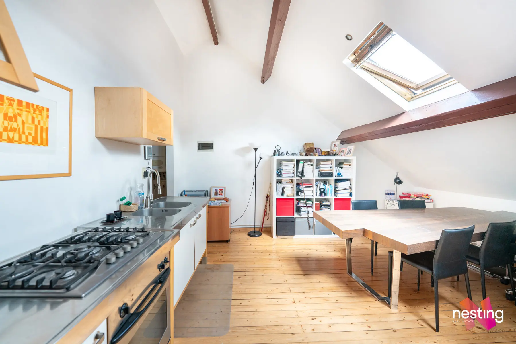 Une salle à manger avec une cuisine ouverte semi-équipée (il n'y a pas de frigo), une grand séjour de +- 29m2 avec un coin chambre, une terrasse exposée nord ouest idéale pour profiter de superbes couchers de soleil et une salle de bain.