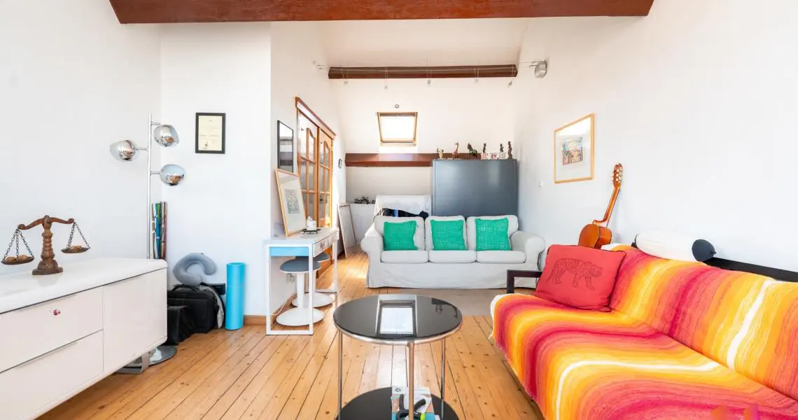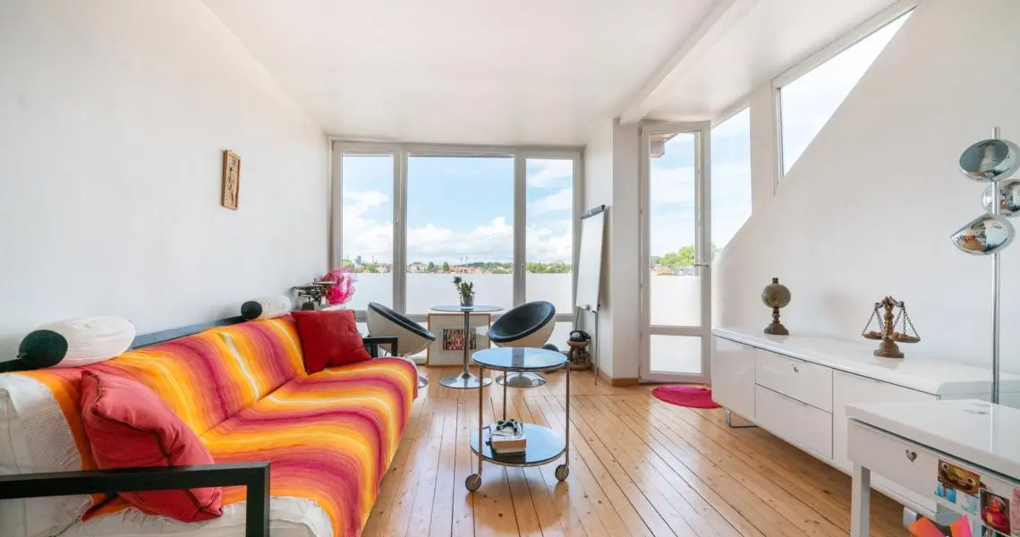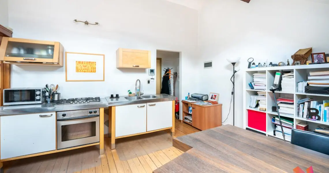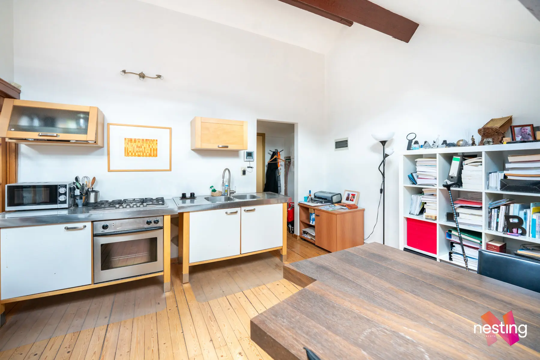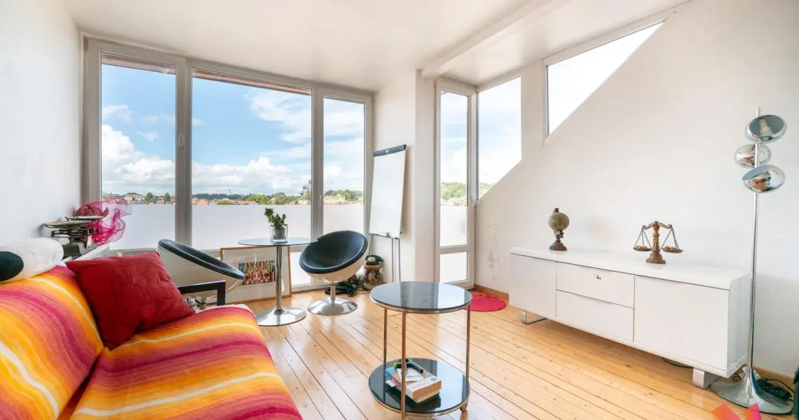 Une salle à manger avec une cuisine ouverte semi-équipée (il n'y a pas de frigo), une grand séjour de +- 29m2 avec un coin chambre, une terrasse exposée nord ouest idéale pour profiter de superbes couchers de soleil et une salle de bain.