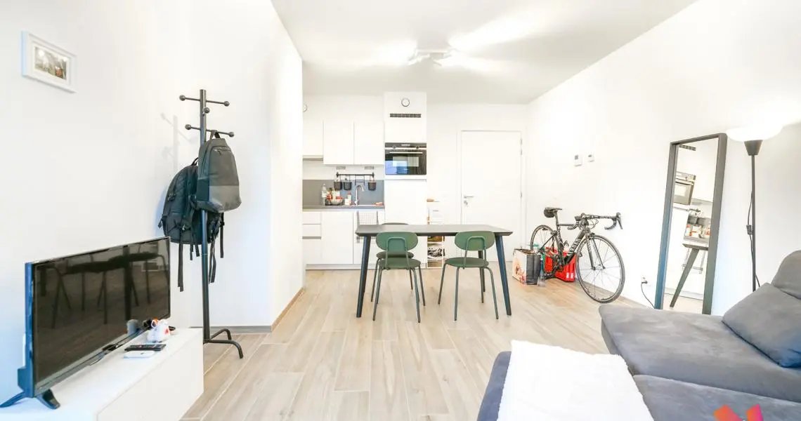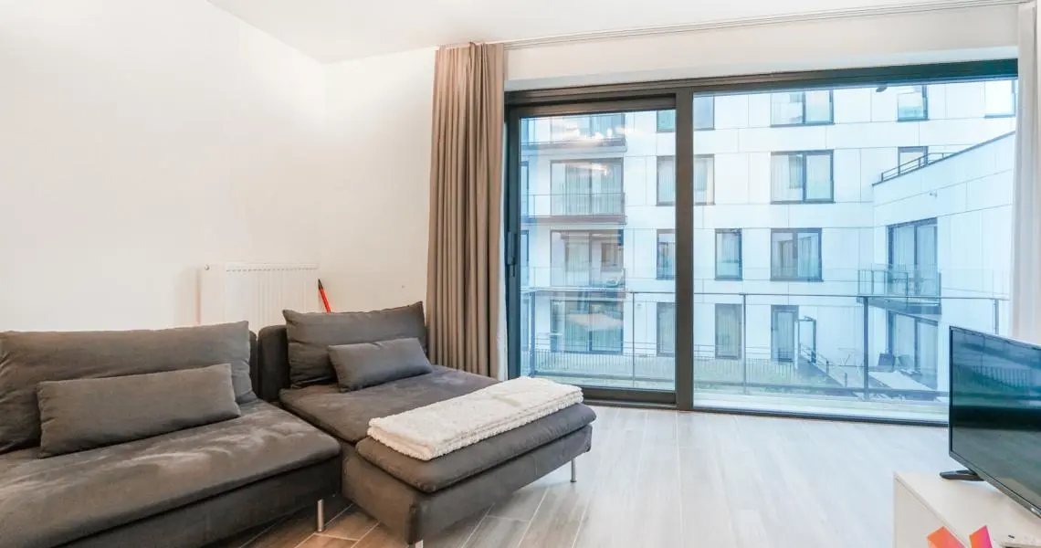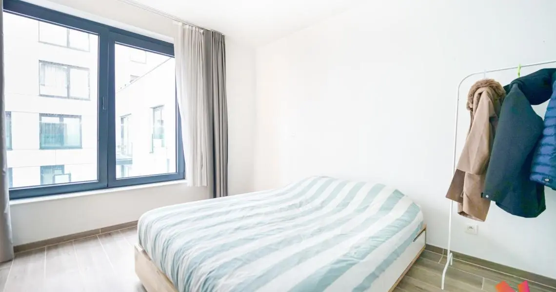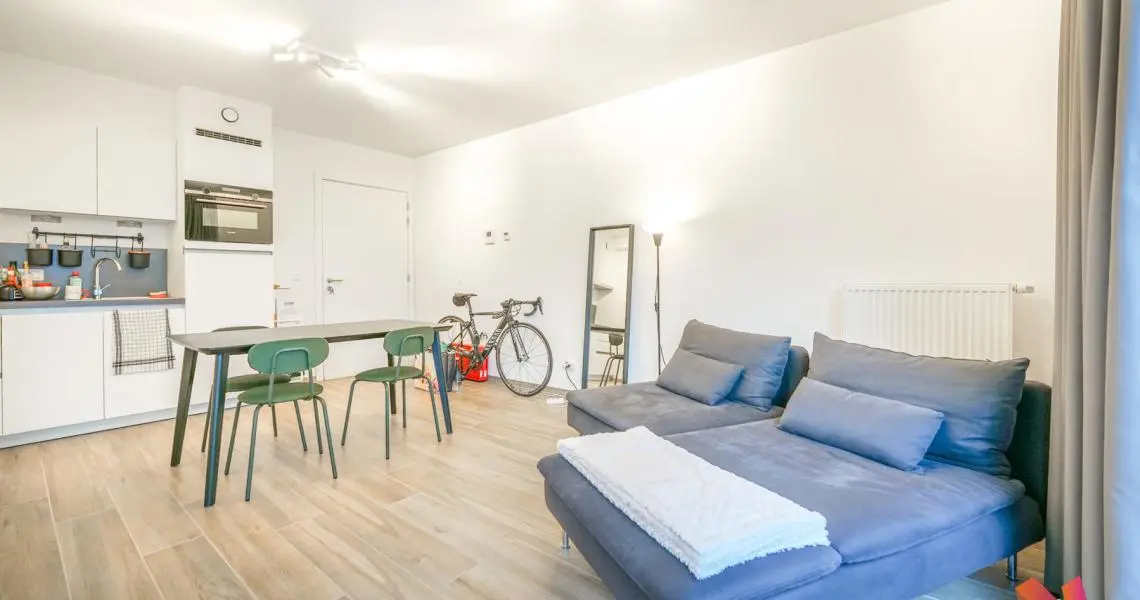 Bruxelles, à proximité du Canal et de Tours & Taxi, dans une rue calme et bien desservie, très beeau studio de +- 50m2 lumineux et offrant : un séjour, cuisine ouverte de +- 22m2, un balcon sud est, un coin chambre avec salle de douche et wc.