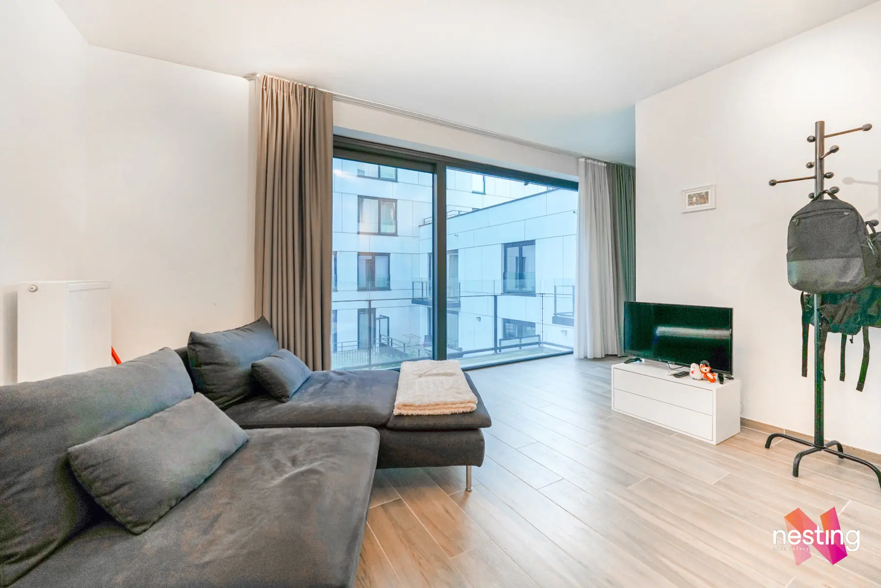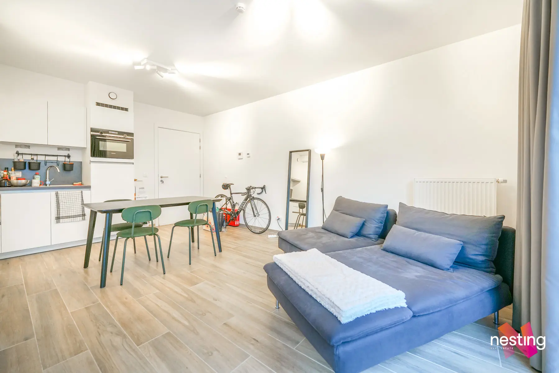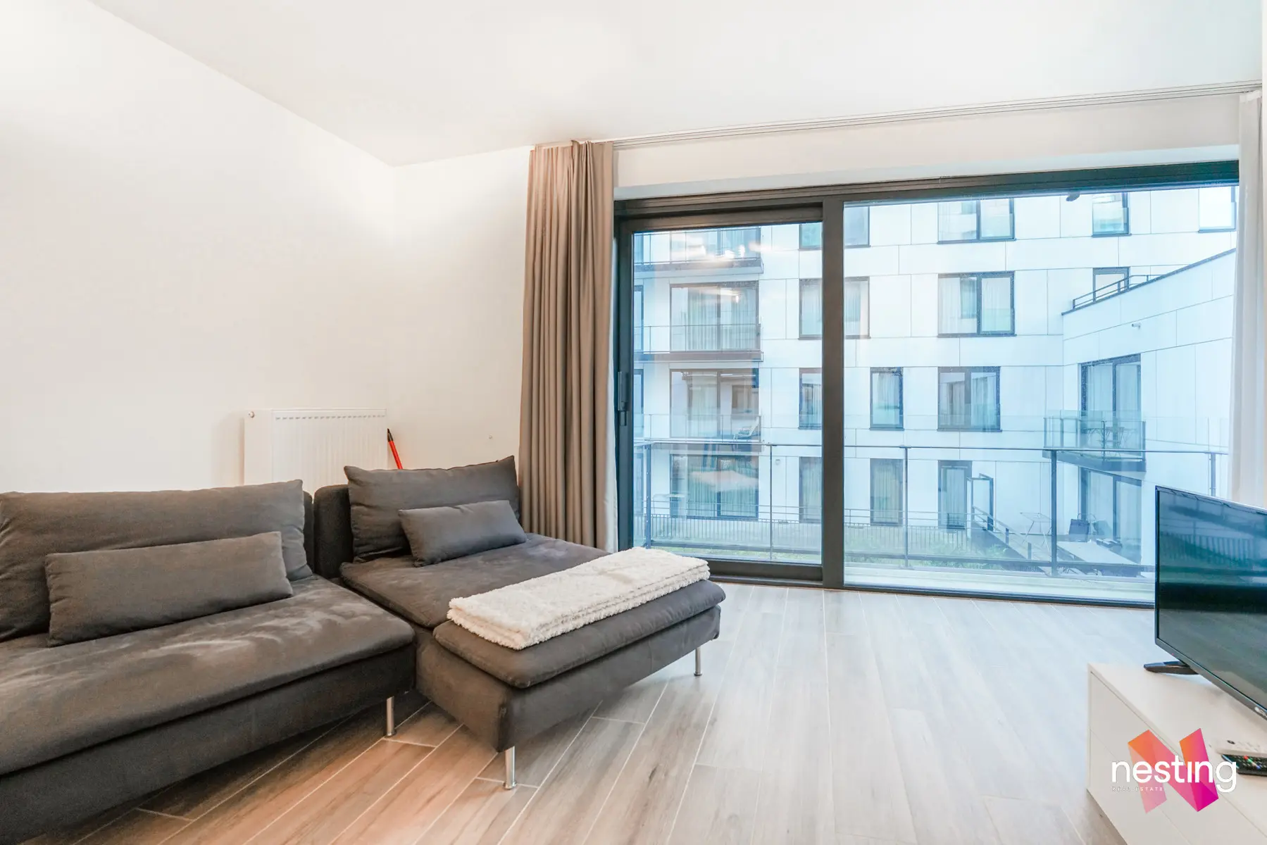 Bruxelles, à proximité du Canal et de Tours & Taxi, dans une rue calme et bien desservie, très beeau studio de +- 50m2 lumineux et offrant : un séjour, cuisine ouverte de +- 22m2, un balcon sud est, un coin chambre avec salle de douche et wc.