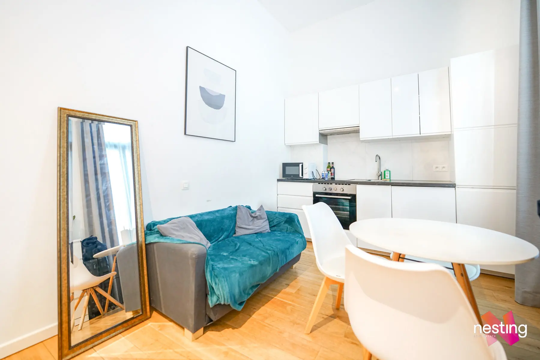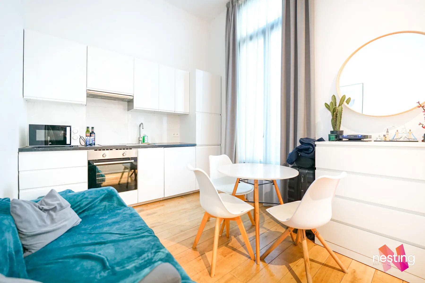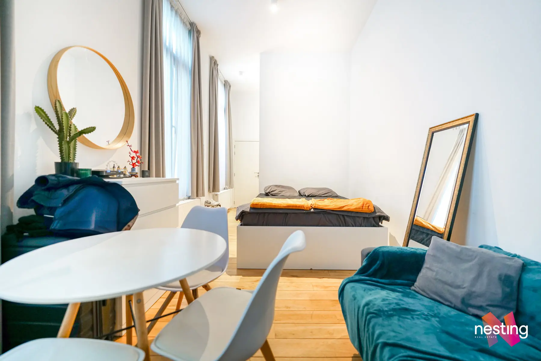 En plein coeur des Bruxelles, à proximité de la Grand-Place, des commerce et des transports en communs, venez découvrir ce studio meublé de +- 30m2 qui comprend :