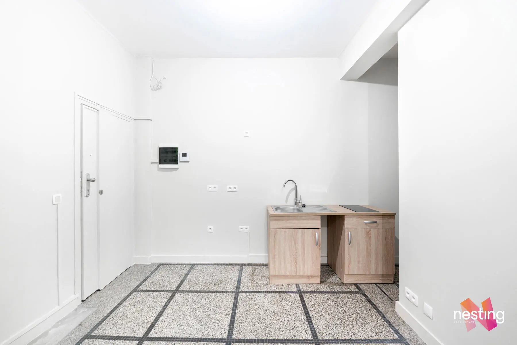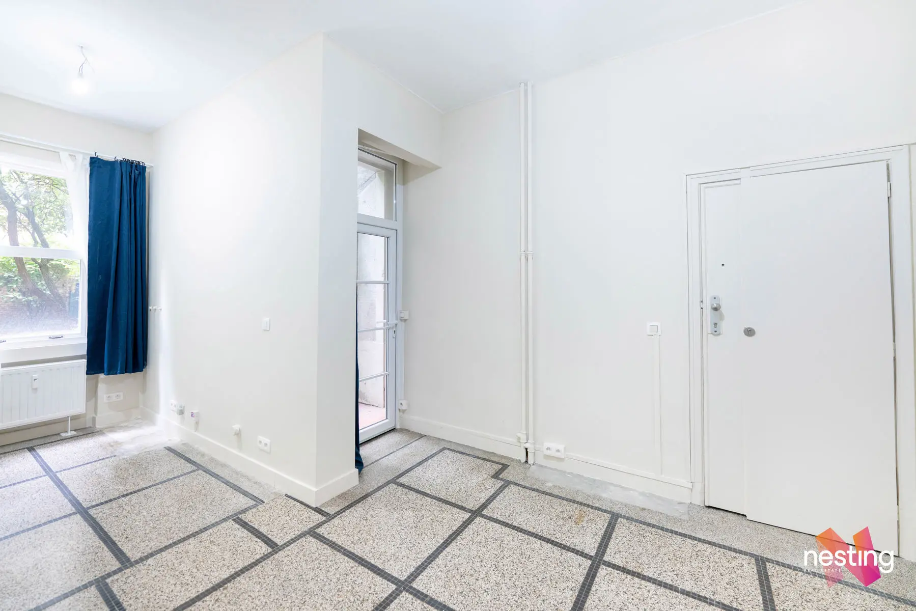 Ixelles, Avenue Emile de Beco, au rez de chaussée d'un bel immeuble, venez découvrir cette ancienne conciergerie réaménagée en studio + mansardes (chambre de bonne rénovée).