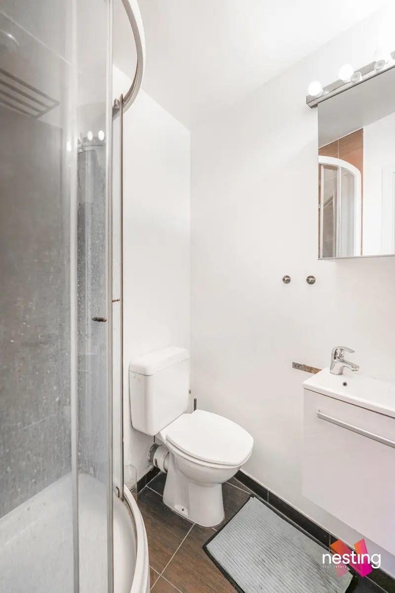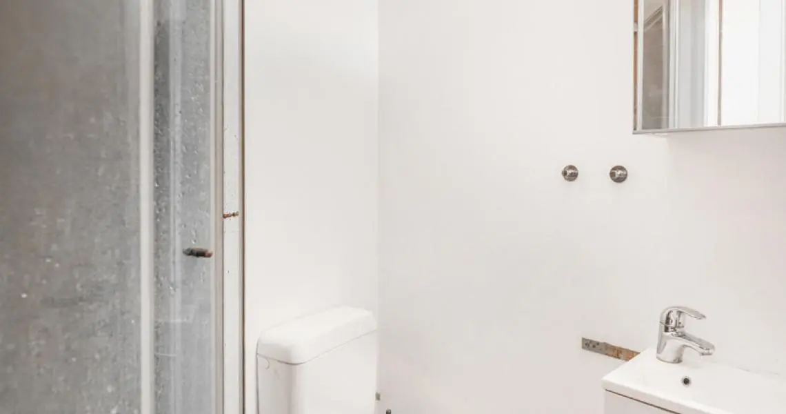 Studio de +- 30m2 brut avec cuisine équipée, et salle de douche avec wc.
