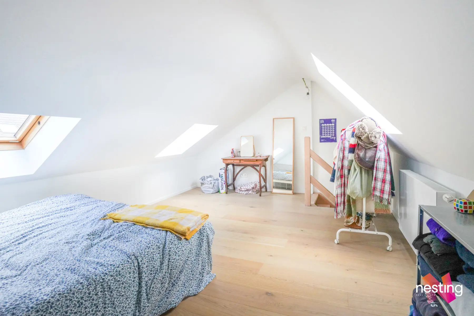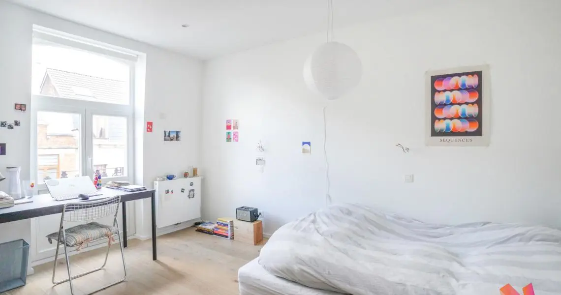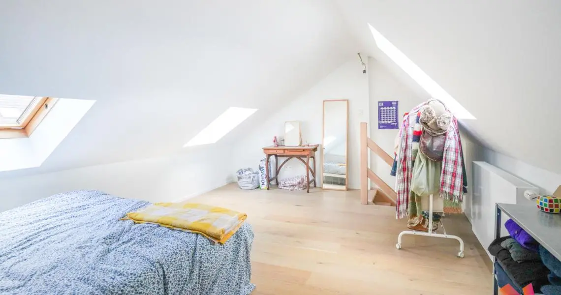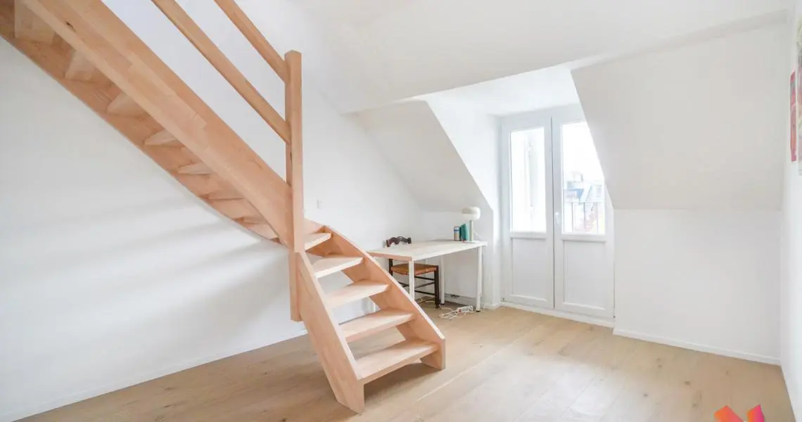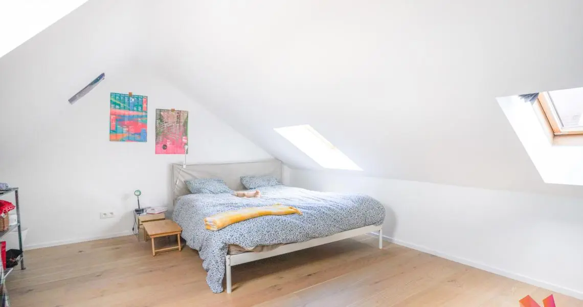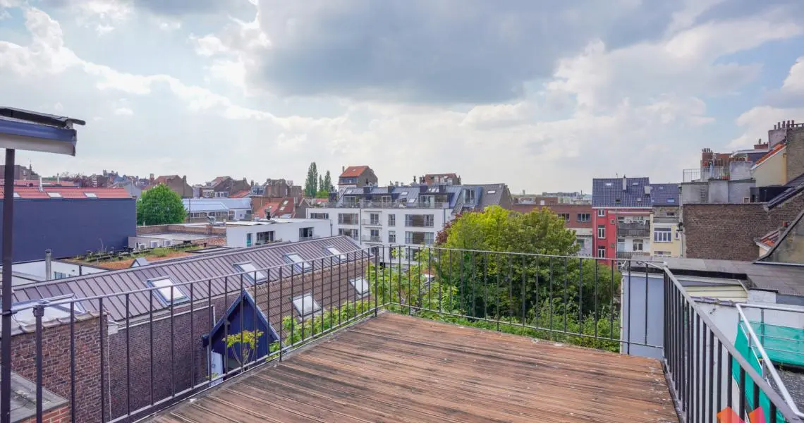 Au 3ème étage : Une salle de douche moderne, une chambre de +- 13m2 et une seconde chambre avec mezzanine de +- 20m2 donnant accès à une superbe terrasse exposée sud-ouest.