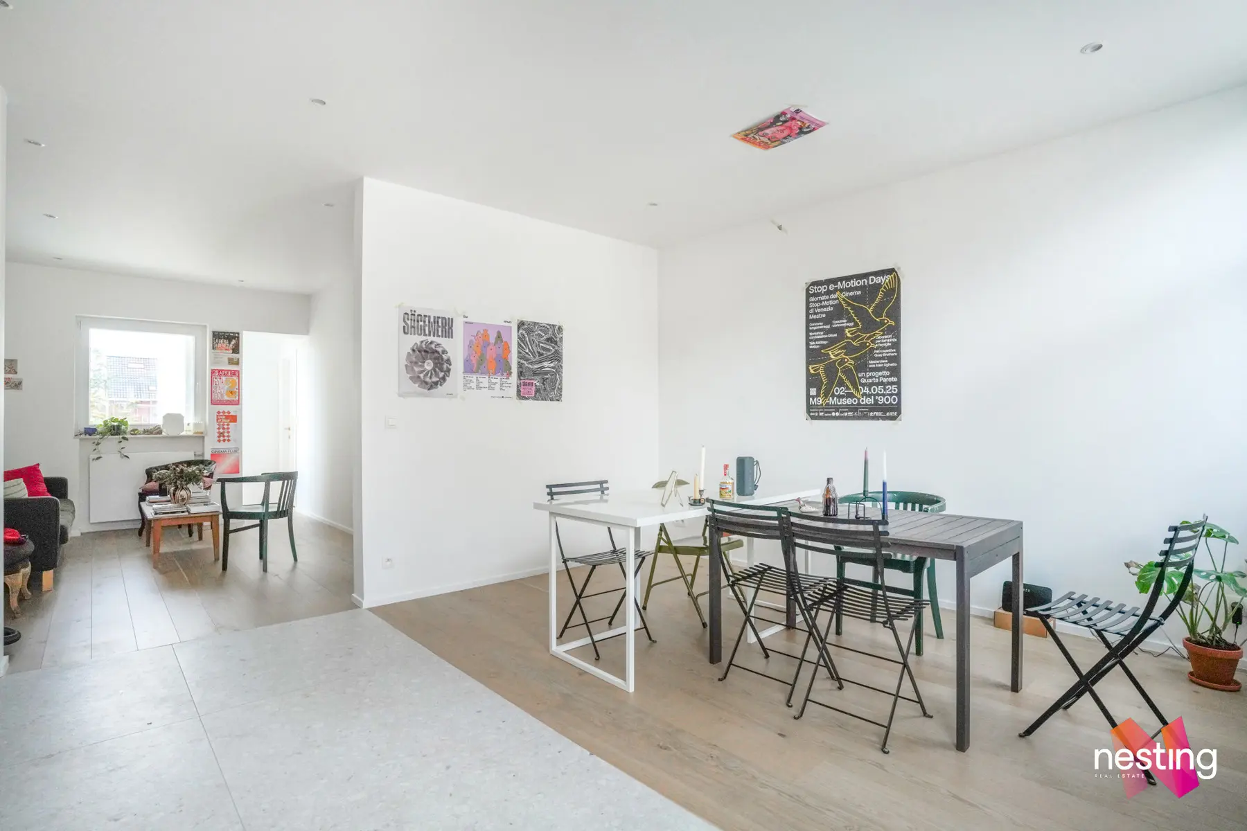 Au 2ème étage : Une salle à manger lumineuse avec une cuisine ouverte entièrement équipée, un séjour donnant accès à un balcon, un bureau, une buanderie et un wc séparé.